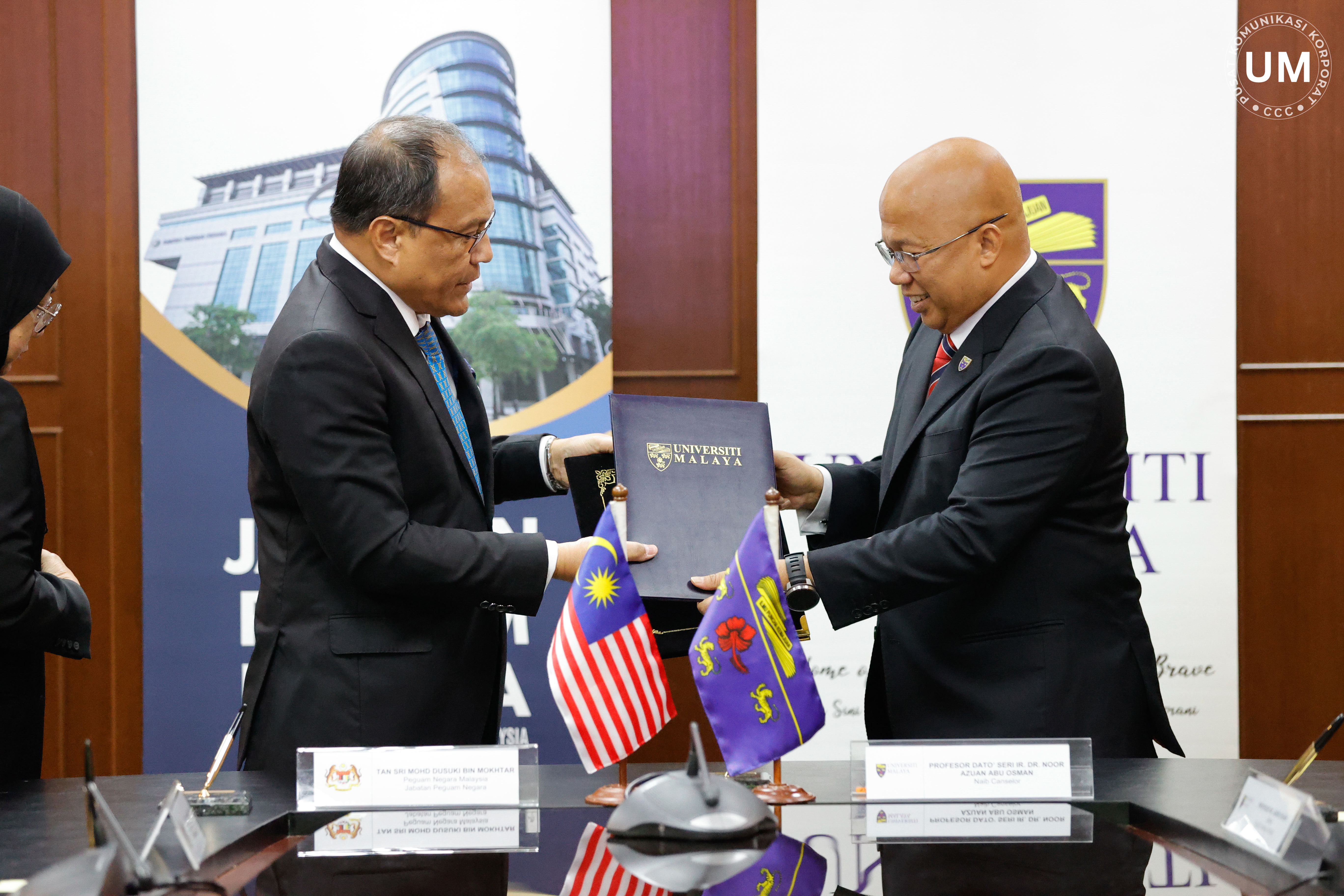 Universiti Malaya hari ini menerima kunjungan rasmi Tan Sri Mohd Dusuki bin Mokhtar, Peguam Negara, bersempena Majlis Menandatangani Memorandum Persefahaman (MoU) antara Jabatan Peguam Negara dan Universiti Malaya.